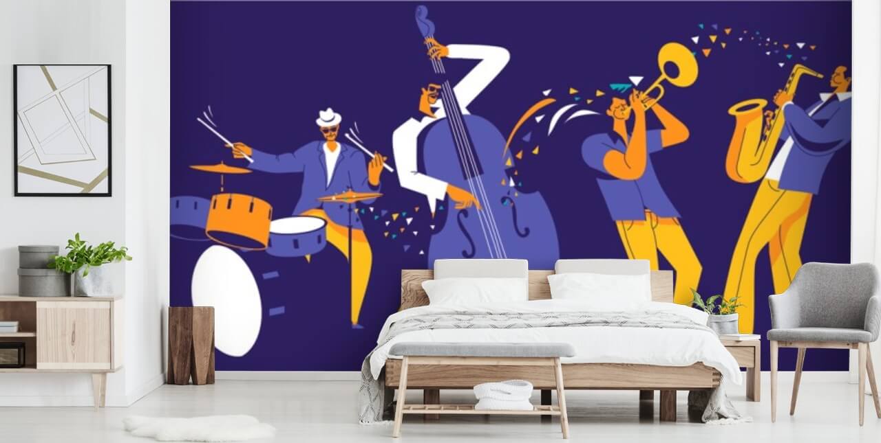 Nyt denne morsomme og funky Purple Jazz Vibes tapet fra Wallsauce.com! Skreddersydd for å passe veggen!