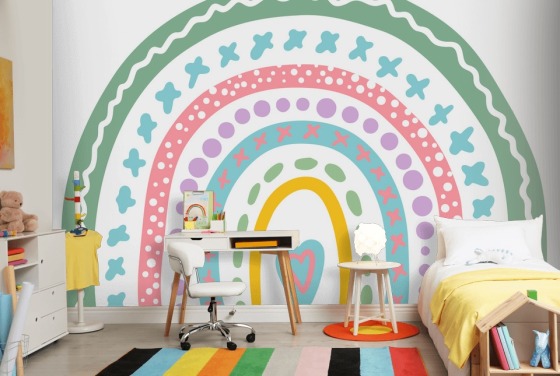 Rainbow tapet er en vakker måte å legge sjarm og farge til et barns soverom. Våre regnbue veggmalerier er like søte som de er stilige. Sørg for at barnet ditt starter hver dag med et smil i ansiktet!