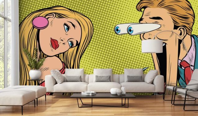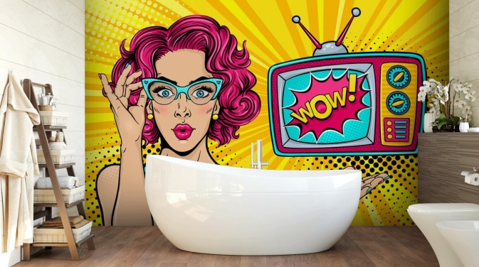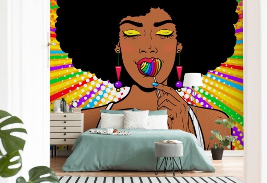 Introduser glamour og farge til innredningen din med en pop art tapet veggmaleri.