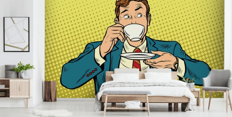 popkunstmann i dress som drikker fra en hvit tekopp tapet