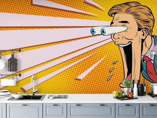 mann sikler med kjevefall og øyne som springer ut av hodet pop art tapet