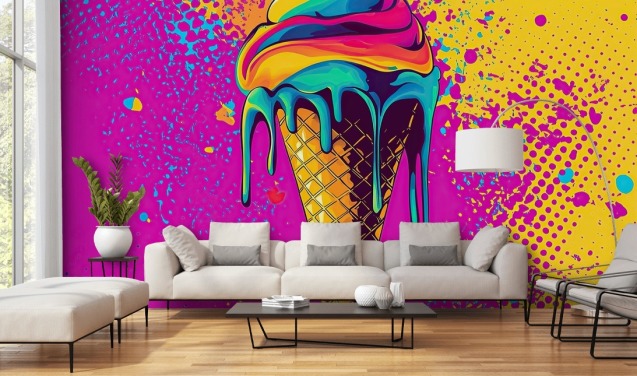 fargerikt neon iskrem tapet kalt Pop Art Ice Cream Cones for kafeer, restauranter og barnas soverom