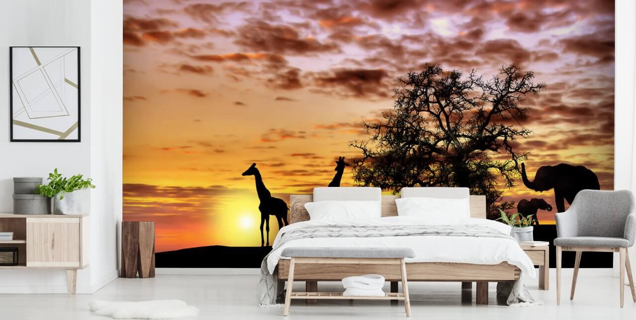 Få dette skreddersydde Safari Sunset tapetet til hjemmet ditt. Gi liv til disse utrolige dyrene med et safaritapet.