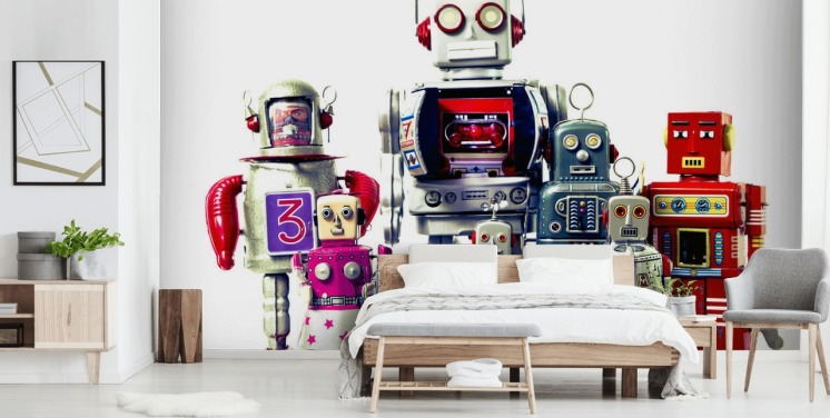 Sci-fi-fansen gleder seg over vårt utvalg av robottapetkunst. Robot veggmalerier er flott for elskere av sci-fi og fantasy elskere! Fra fargerike vintage og retro tinn robot veggmalerier til mer moderne robotfigurer og maskiner, robotmalerier er en virkelig morsom måte å dekorere.