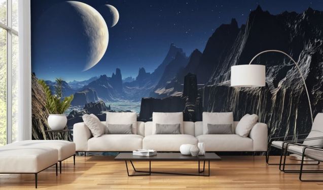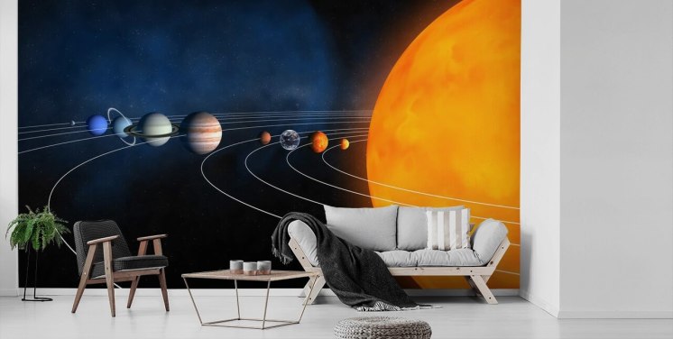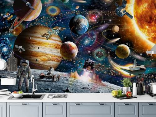 5... 4... 3... 2... 1... tenning... vi har løft av! Ta en tur blant stjernene fra hjemmet ditt med våre romtapetdesign.