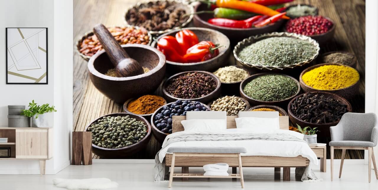 Installer denne skreddersydde Krydder i Boller veggmaleri. Leveres i paneler og lett å bestille.