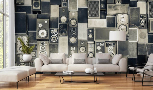svart-hvitt tilpassbar høyttaler tapet kalt Music Speakers Wall Monochrome for soverom
