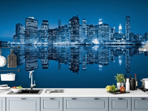 blå new york cityscape tapet veggmaleri kalt Manhattan Night Skyline for soverom og kontorer