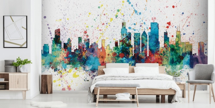 fargerik abstrakt chicago cityscape veggmaleri