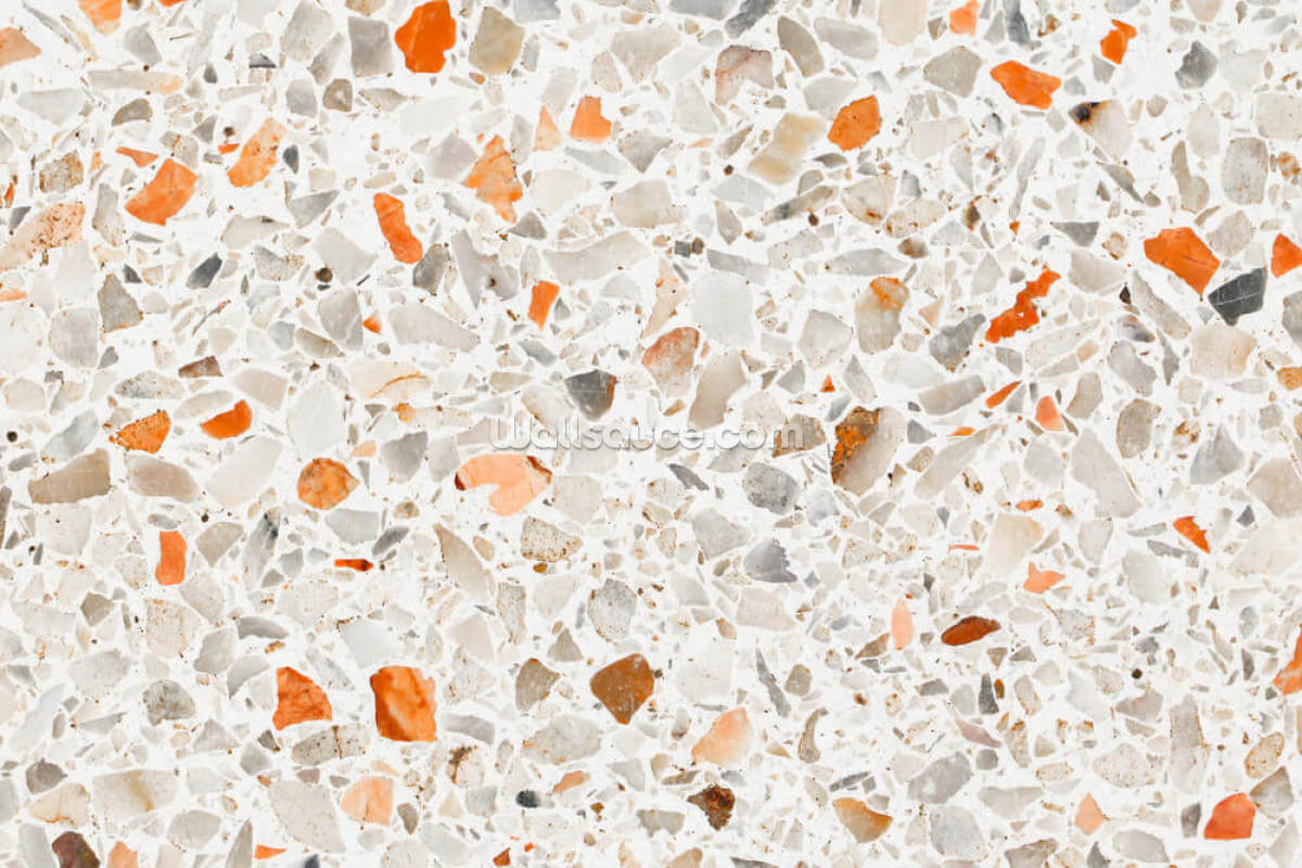 Vil du ha en terrazzo tapet med en fargeskvett? Deretter velger du denne fantastiske Vibrant Orange og Grey tapet!