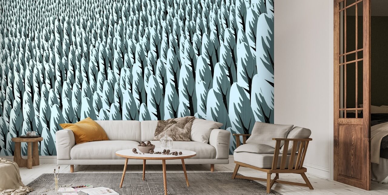 Stunning Winter Pine Forest wall mural from Wallsauce. This high quality Winter Pine Forest wallpaper is custom made to your dimensions. Easy to order and install .