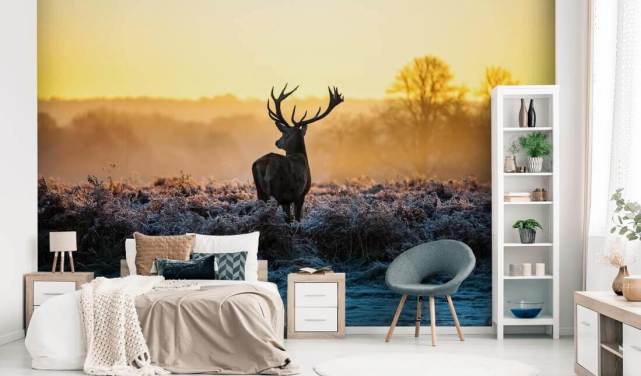 mørkt tilpassbart skogstapetveggmaleri kalt Forest Stag by 1x for soverom eller kjøkken