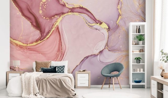 rosa og gull tilpasset marmor tapet veggmaleri kalt Dreamy Pastel and Gold for kjøkken