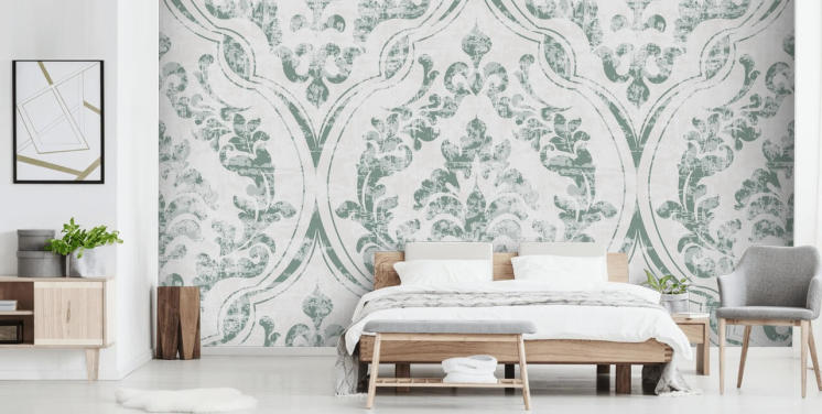 beige og lysegrønn blomstertapet veggmaleri kalt Meadow av Marina Stupakova for soverom