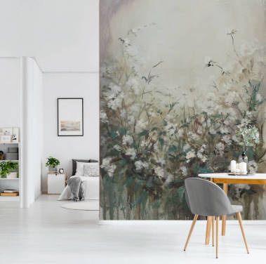 lyst tilpasset blomstereng tapetveggmaleri kalt Delicate Floral Meadow for soverom