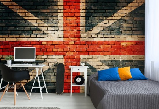 union jack tilpassbart flaggtapet veggmaleri kalt Union Jack on Old Brick for soverom