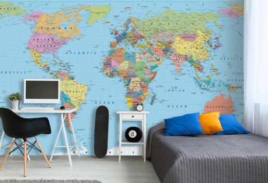 Farget kart over verden Tapetmaleri