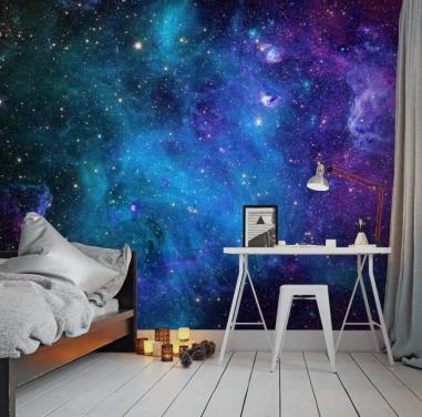 lilla og blå tilpassbar tåketapet kalt Galaxy for soverom