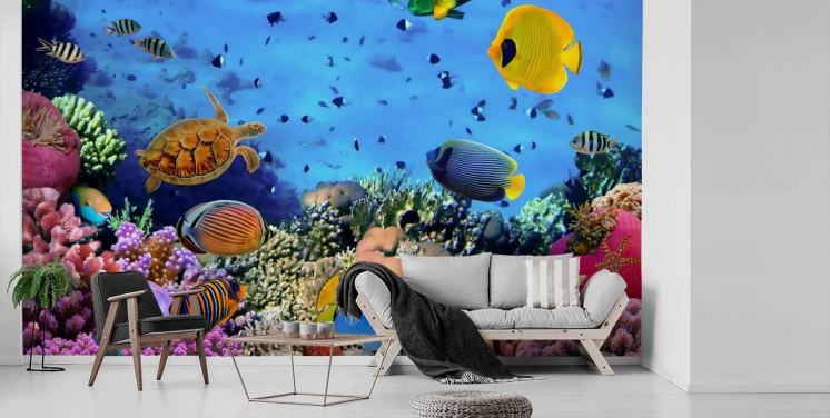 fargerikt tilpassbart fisketapetveggmaleri kalt Photo of a Coral Colony for barnas soverom