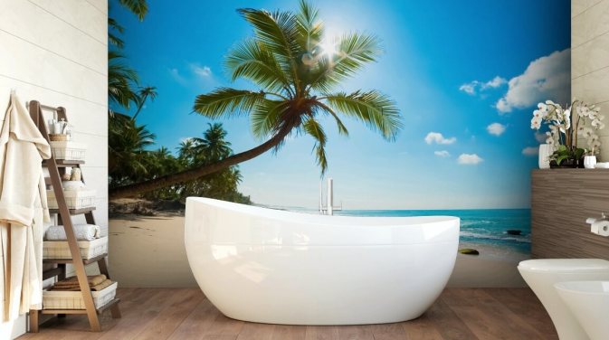 blågrønn og gull tilpasset strandtapet veggmaleri kalt Tropical Beach