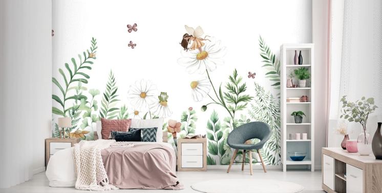 illustrerte voksende blomster med feer tapet