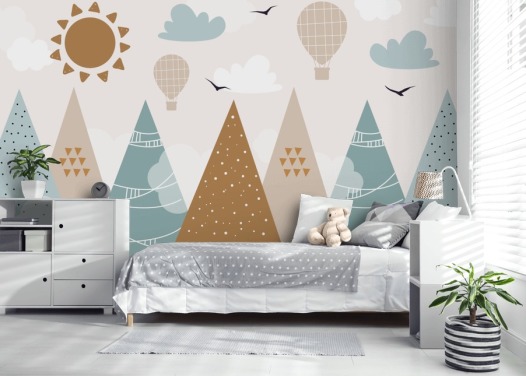 søt doodled fjell tapet veggmaleri i pastellfarger
