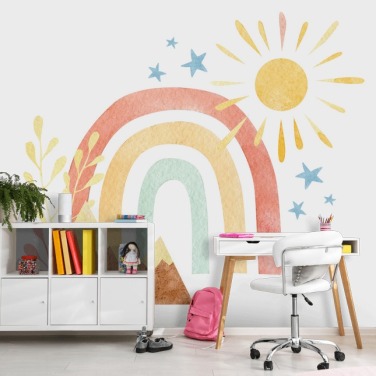 Nøytral Boho Rainbow tapet veggmaleri for barnas soverom