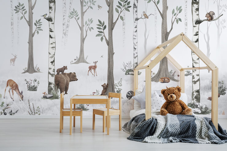 Beige and earthy tones are a popular colour scheme for guest bedrooms because the palette is neutral enough for every visitor. Young, old, male, female, cool and hip-neutral is always well-appreciated. Our beautiful ‘In White’ wallpaper can instantly transform your interior space. Landscapes and woodlands covered in snow or frost can work well in both large and small rooms. Winter Landscapes in a small room can make them appear more spacious, whereas in larger rooms they will make your guest feel as though they are walking straight into a winter wonderland.