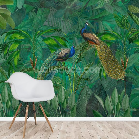 Shop this beautiful Peacock Paradise Jungle Mural by Andrea Haase.