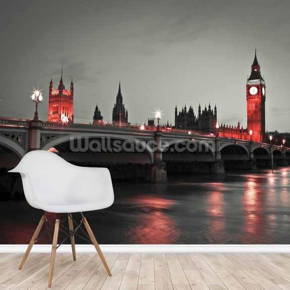 Stunning Westminster Bridge with Red Lights wall mural from Wallsauce.