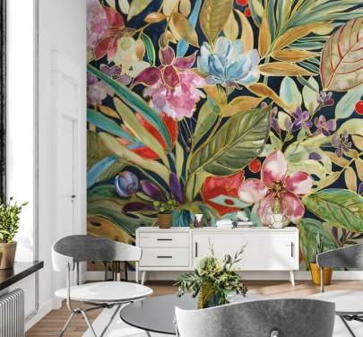 pink and green floral wallpaper mural called Spring Fling by Carol Robinson for bedrooms and lounges