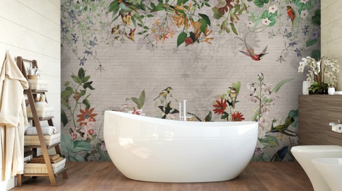 Discover a world of beauty when you explore through Marina Stupakova’s collection of nature-inspired wall murals. Marina is a Surface Designer and Artist based in the Ukraine and in the past several years, she has enjoyed designing wallpapers for homes, venues and more. She blends many different techniques and colour combinations in her designs to create unique wallpaper pieces.
