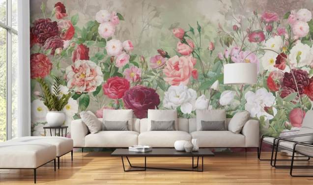 colourful customisable floral wallpaper by Marina Stupakova for bedrooms
