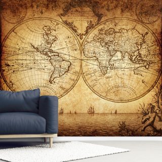 A more pared back and minimalistic approach to a world map wall mural, this vintage piece shows the world as it was seen in the 1800's. With time-worn cartography paper, and simple outlines that detail countries and continents, this piece will be ideal for any wall in your house. Why not pair this wallpaper with brown tones and gold or bronze accents to fully transport you to a time gone by? It's a foolproof way to become a sophisticated individual.