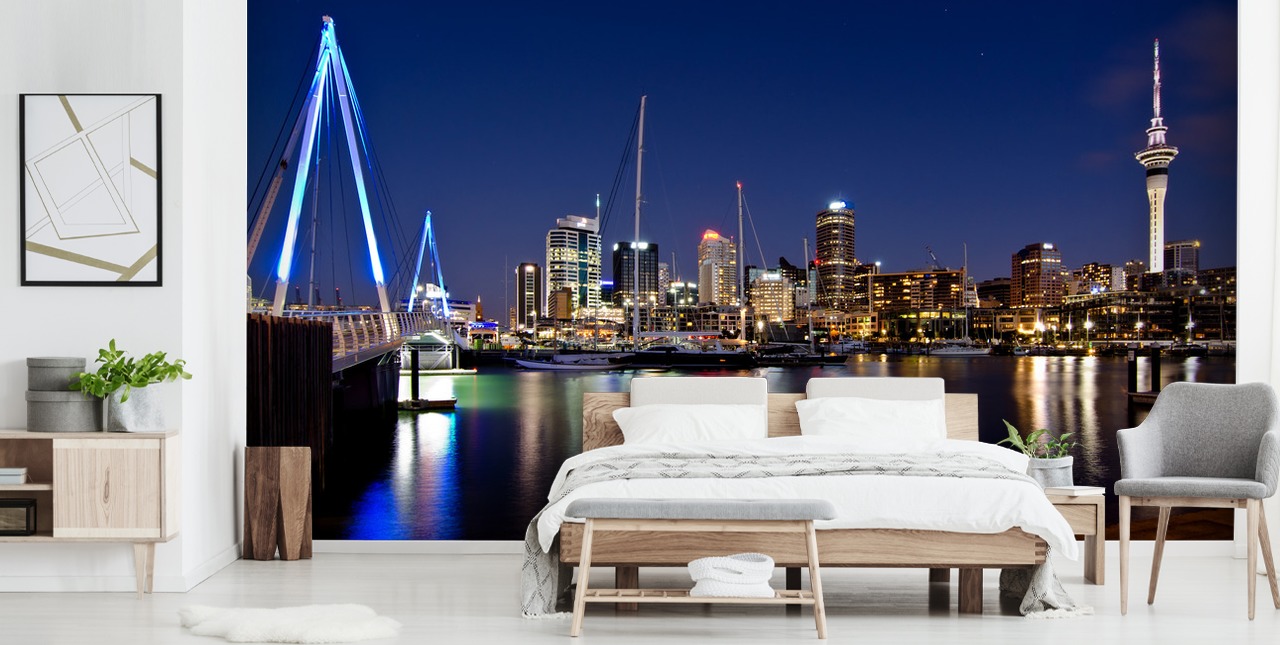 Stunning Auckland Nightime wallpaper mural. Custom-made to fit the wall.