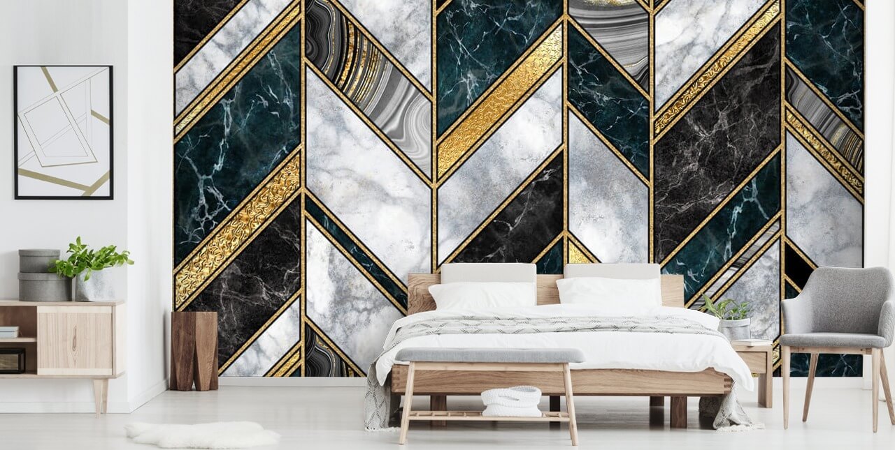 If you want your home to ooze sophisticated and class, then choose this gorgeous Black and Gold Art Deco wallpaper. The range of white, black and inky grey marble looks stunning paired with dashes of gold-effect.