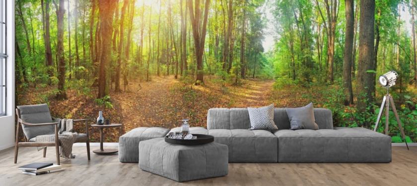 Sunny Day Forest Panorama Wall Mural Wallpaper