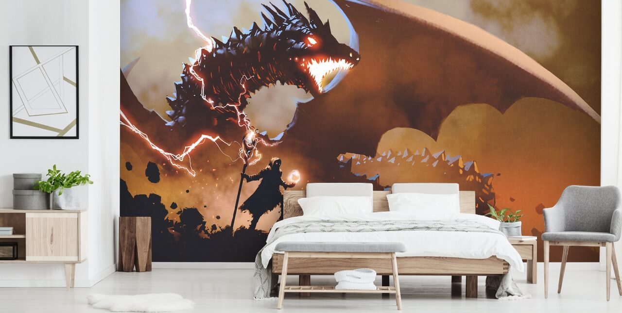 Fear wells up inside your soul when you see this epic Dragon Attack wallpaper mural. It’s dramatic, terrifying and will excite any dragon enthusiast!