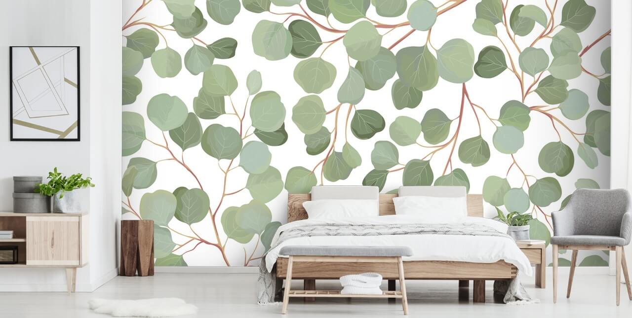 Do you love the new green interiors trend? Then choose this stunning Eucalyptus Medley wallpaper. It’s the perfect sage green wallpaper for your home whether you are looking for a sage green living room, bedroom or bathroom.
