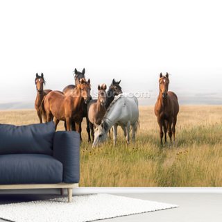 black and white customisable horse wallpaper called Horses Black & White for businesses, living rooms and kitchens