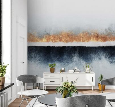 blue and gold watercolour wallpaper mural called Blue with Gold Watercolour for bedrooms, bathrooms and kitchens