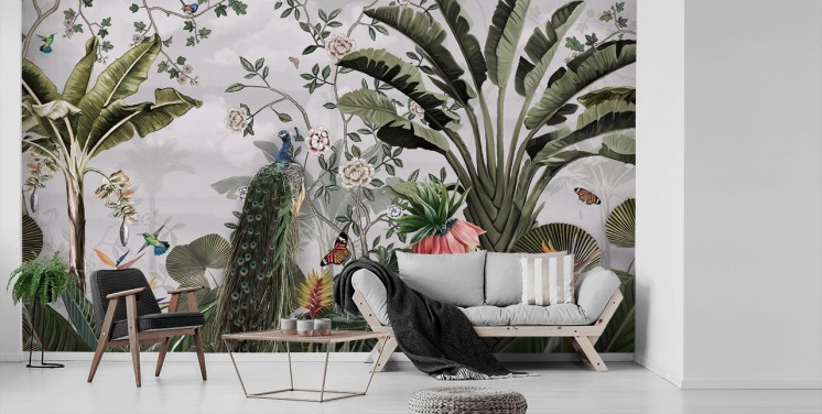 Transform your space with a beautiful peacock wallpaper mural. Peacocks represent beauty, renewal, and confidence. Their stunning look adds elegance to any room, whether a bedroom, living room or home office.
