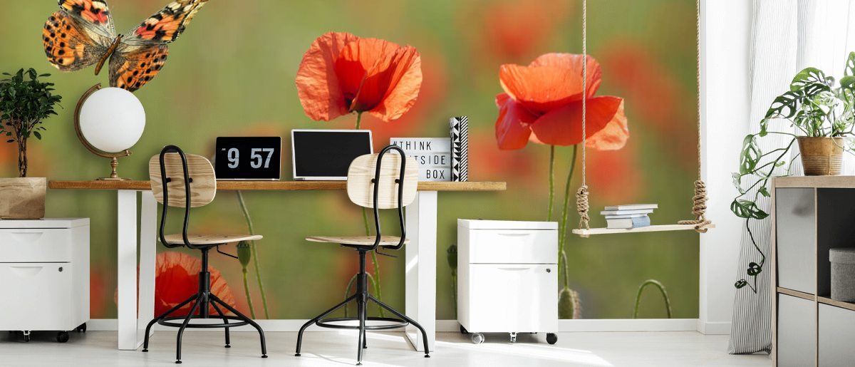 Install this custom-made Poppies and Butterflies wallpaper. Supplied in panels and easy to install.