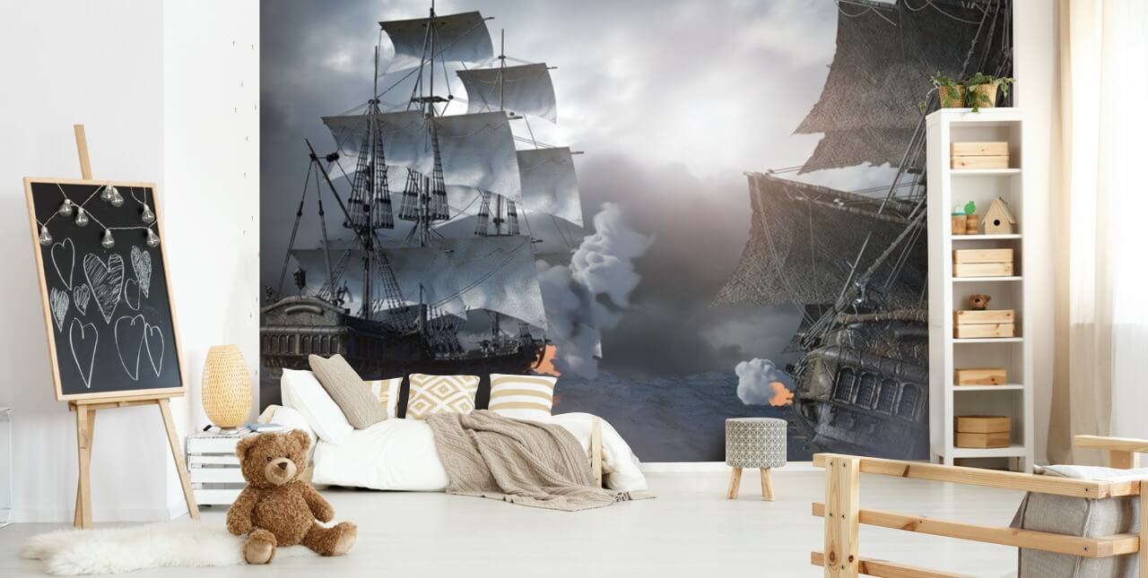 Can you hear the cannons firing and the waves crashing? It’s a dramatic scene that’s not for the faint hearted, and pirate enthusiasts are sure to love the drama this pirate ship scene brings to any room! Is your little one a keen pirate enthusiast or gamer? Then this wallpaper would be perfect for their bedroom.