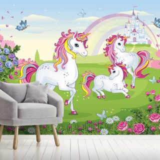 Magical and mythical unicorn wallpaper murals can bring enchantment to any room.
