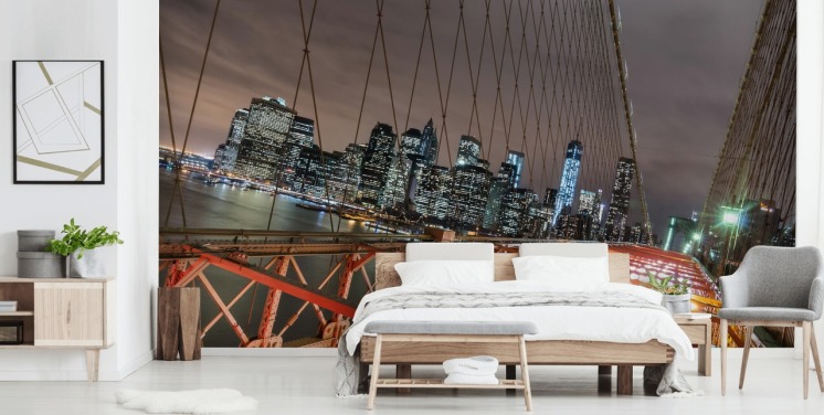 brooklyn bridge at night wall mural