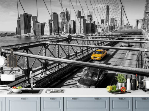 Taxi on Brooklyn Bridge New York Wall Mural