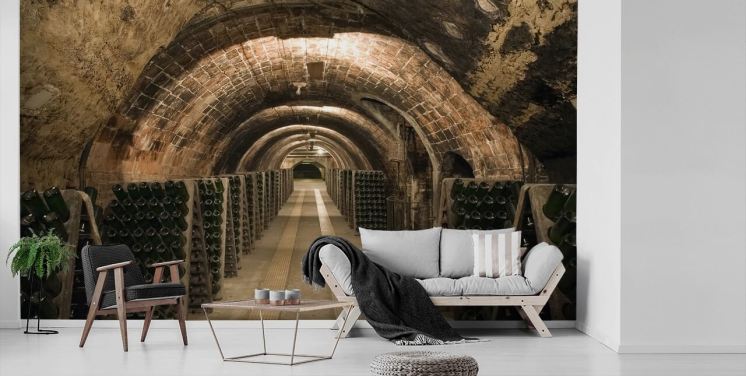 brown customisable 3D wine cellar wallpaper mural called Wine Cellar for kitchens.