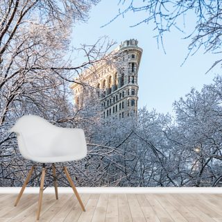 monochrome custom New York wallpaper mural called Central Park Covered in Snow for living rooms or dining rooms