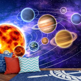 colourful customisable space wallpaper mural called 3D Solar System for child's bedroom